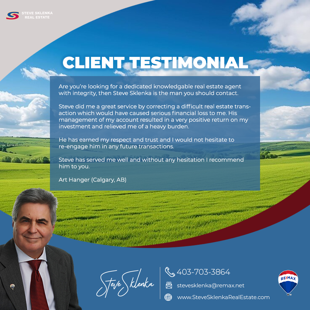 To contact Steve, please call 403-703-3864, or email stevesklenka@remax.net