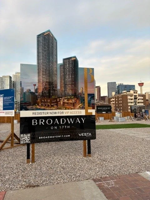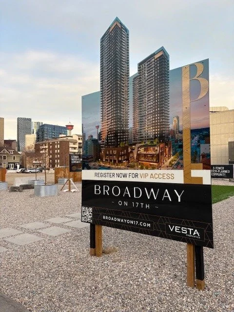 The building going up at 17th Avenue SW and 4th Street SW is called Broadway on 17th, a major mixed-use development by Vesta Properties.